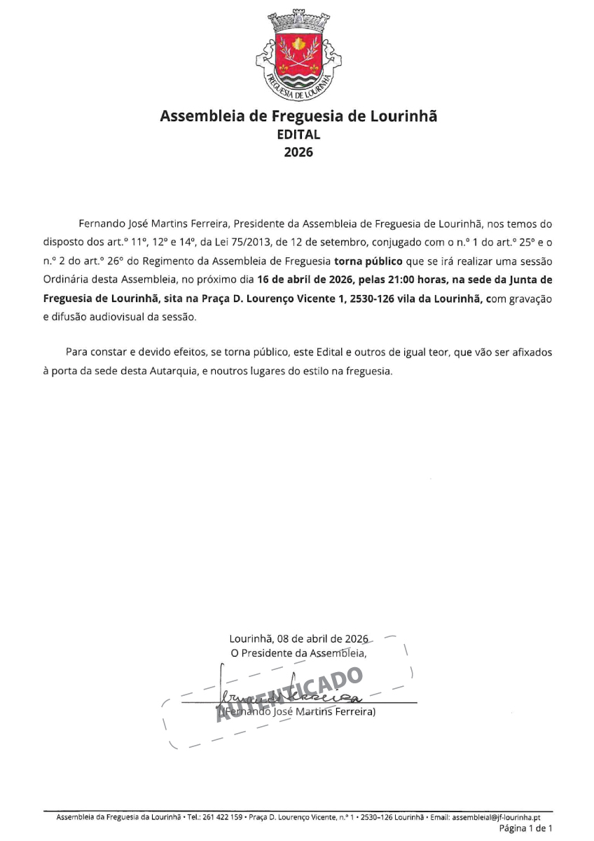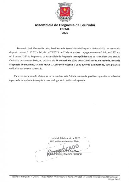 A Junta da Freguesia de Lourinhã, em parceria com o Município da Lourinhã e a Associação das Matas, está a promover o transporte para o evento desportivo “Corrida Sempre Mulher” Avenida da Liberdade 2026.Este evento aberto a todos os géneros, mas de competição exclusiva para Mulheres, realiza-se no dia 12 de abril de 2026, com partida na Praça dos Restauradores, em Lisboa, com abertura às 09h00m e partida às 10h30m.O objetivo é angariar fundos para a ASSOCIAÇÃO PORTUGUESA DE APOIO À MULHER COM CANCRO DA MAMA, uma IPSS com valência na saúde, sem fins lucrativos e de utilidade pública, que desde 1999 dedica-se ao diagnóstico precoce em oncologia, em especial na mulher, tendo por missão essencial prestar cuidados de medicina preventiva, curativa e de reabilitação a utentes com doença oncológica, nomeadamente mamária e ginecológica e cuidados de saúde à população em geral através da sua unidade privada de saúde.Mais informações e inscrição, para este evento, em https://corridasempremulher.com. Até dia 31 de março, as inscrições são bonificadas.O registo para o transporte, gratuito, de lotação limitada, pode ser realizado na secretaria da Junta de Freguesia de Lourinhã, na vila da Lourinhã , até dia 02 de abril de 2026, durante o horário de expediente, mediante comprovativo de inscrição no referido evento.